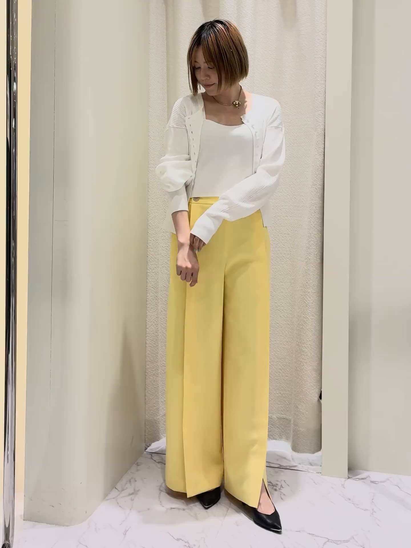 COLUMNの春を感じるコーディネート ショート丈のキャミで程よい肌見せ ベンツの施されたワイドパンツで動きを出し パンプスで程よい抜け感を出してみました✨ 首元がスッキリしたコーディネートの時は、アクセントになるジュエリーを合わせてもバランスがいいです 【身長】 163cm 【着用サイズ】 トップス:F ボトムス:36 気になるアイテムや詳細は、お気軽にニュウマン高輪店まで問い合わせ下さいませ アッセンブルエストネーション ニュウマン高輪店 ニュウマン高輪 South 3F 営業時間 11:00-20:00 TEL 03-6277-4155