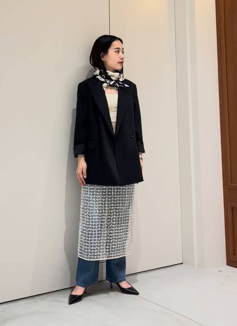 manipuriのスカーフを使った春らしいスタイリング。🌸 デニム×ジャケットの馴染みあるコーディネートにチュールスカートのレイヤード、柄のスカーフを加えることで工夫されたコーディネートに仕上がるので挑戦しやすいと思います✨ デニムは身長154cmで23インチを着用しており、スニーカーやフラットシューズでもそのままご着用いただけるサイズ感となっております。 ASSEMBLEESTNATION GINZASIX店 TEL:03-6264-5553 営業時間:10:30-20:30