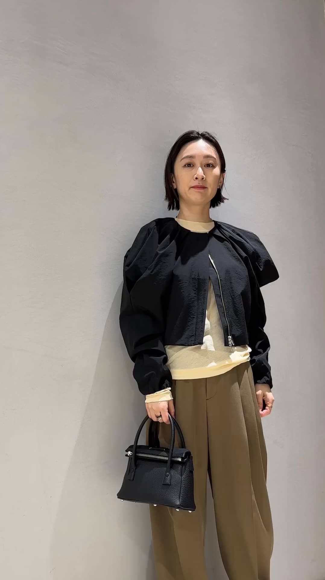 2026年2月19日発売 COLUMNブルゾン ◆styling モードに決まるブルゾンと、ツータックのゆるめパンツのシルエットバランスがおすすめポイント。 デイリーのお出かけに。 ◆items COLUMNブルゾン 肩のデザインがモードなブルゾン。 素材は、グログラン調のハリのある素材で着やすく、軽いです。