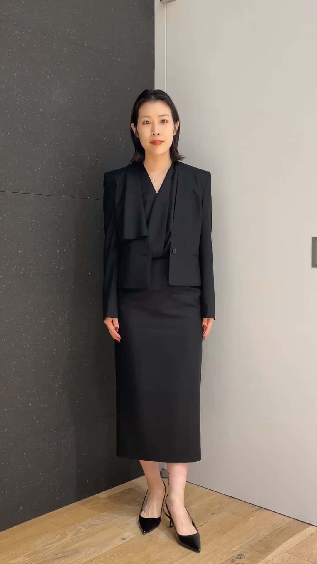 ESTNATION別注のBOTTO GIUSEPPEの素材で仕立てたAKIKO OGAWAのセットアップです。 Super160の梳毛でヴァージンウール100%の生地を使用しており、しなやかで軽く色の発色も別格の生地です。 ジャケットは衿元のアシンメトリーデザインがモードで洗練された印象です。 ワンピースは共布の幅広のベルトがアクセントになっています。 胸元のデザインも美しく、ジュエリーが映える一着です✨ ジャケットとワンピースともに私の身長だと36サイズでジャストでした。 【着用アイテム】 ジャケット:AKIKO OGAWA(36サイズ) ワンピース:AKIKO OGAWA(36サイズ) ネックレス:Hirotaka シューズ:ESTNATION その他スタッフ私物
