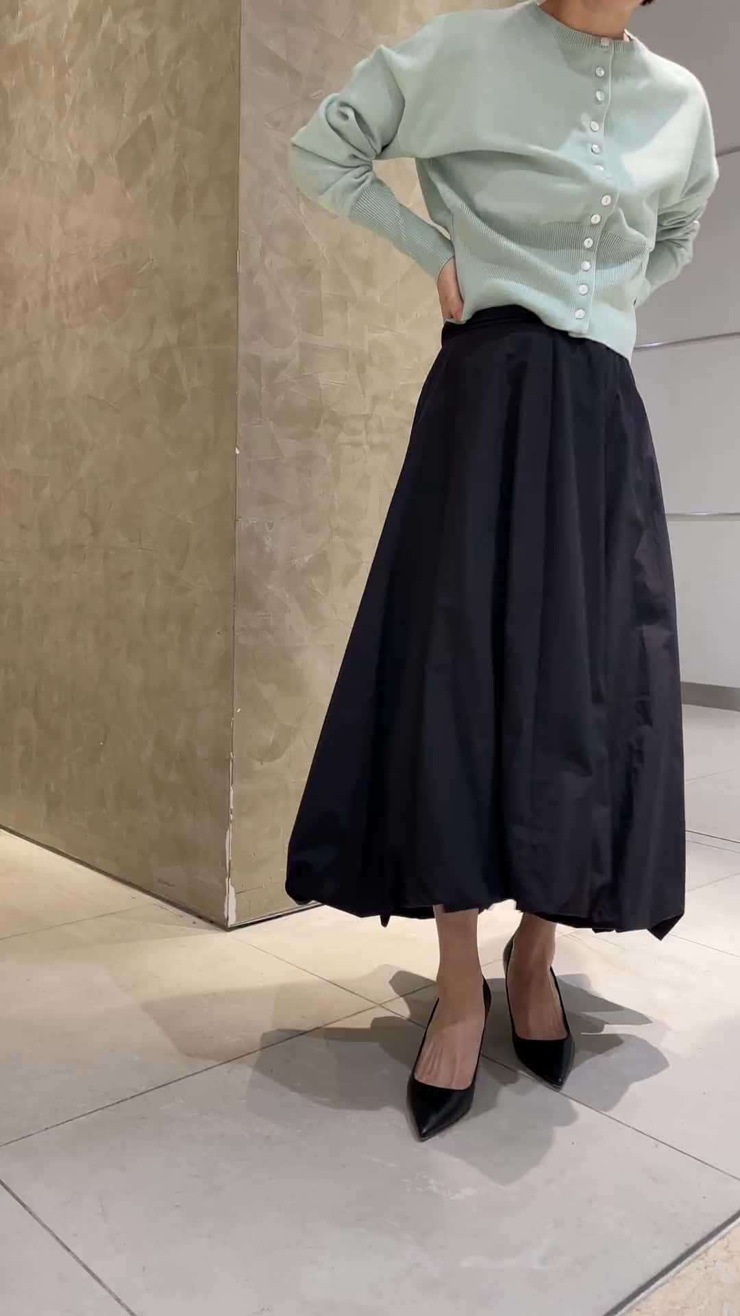 ◆styling クラシカルなシルエット。 ペールグリーンと黒の合わせがポイント。 小柄な方にもおすすめの合わせです。 ◆items UNUS ニットガーディガン 肌触りがなめらかなコットンベースのカーディガン。程よい厚みがあるので、肌寒い時期から初夏まで着ていただけます。 ESTNATION バルーンスカート シワになりにくいイージーケアのスカート。 前上がりのシルエットも重すぎず◎
