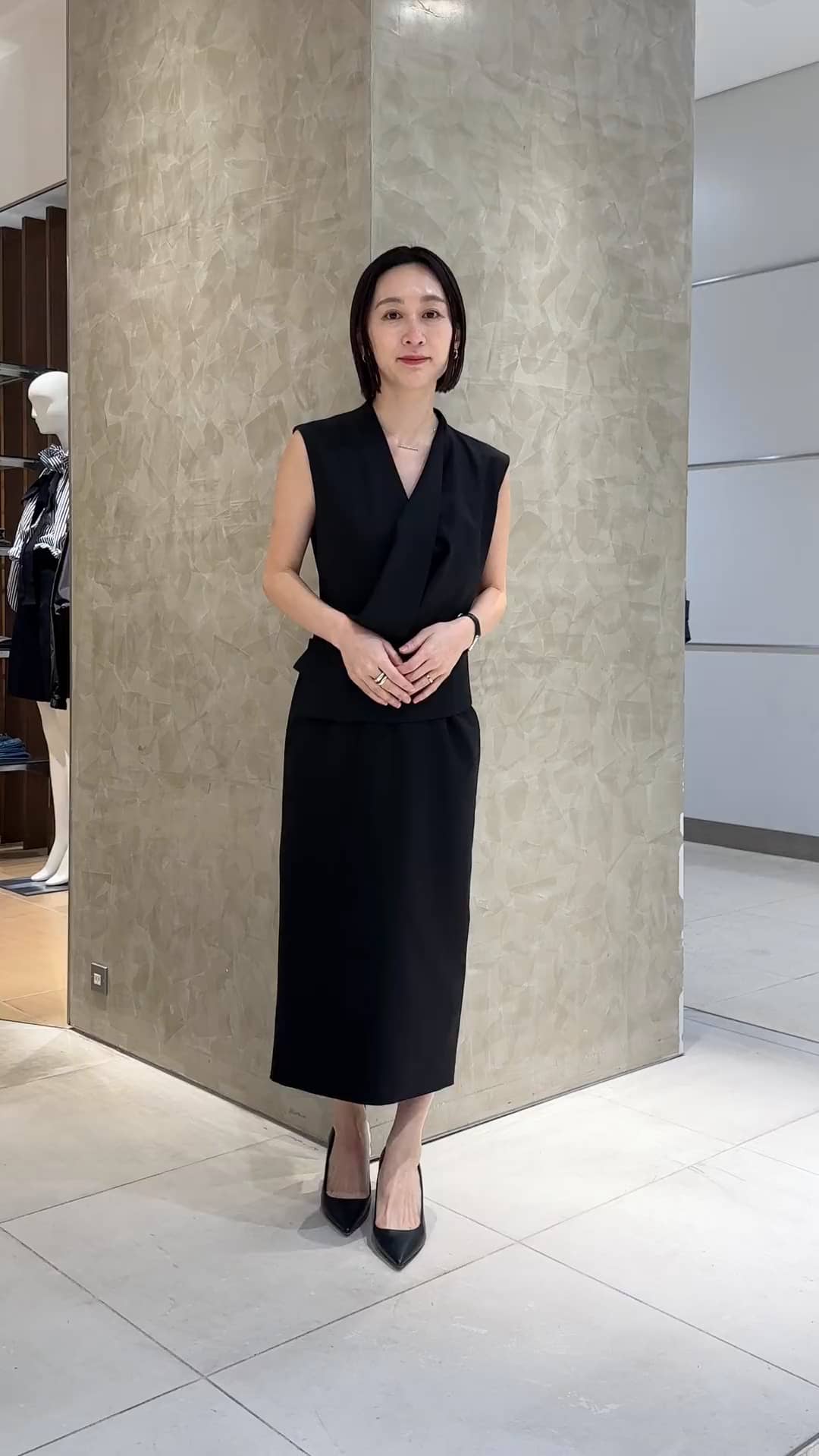 2026年2月19日発売 AKIKO OGAWA.ワンピース ESTNATION別注のワンピース。 クラス感のある美シルエットのワンピースは着るだけで背筋の伸びる凛とした雰囲気です。 ビジネスシーンや、大事な行事に。