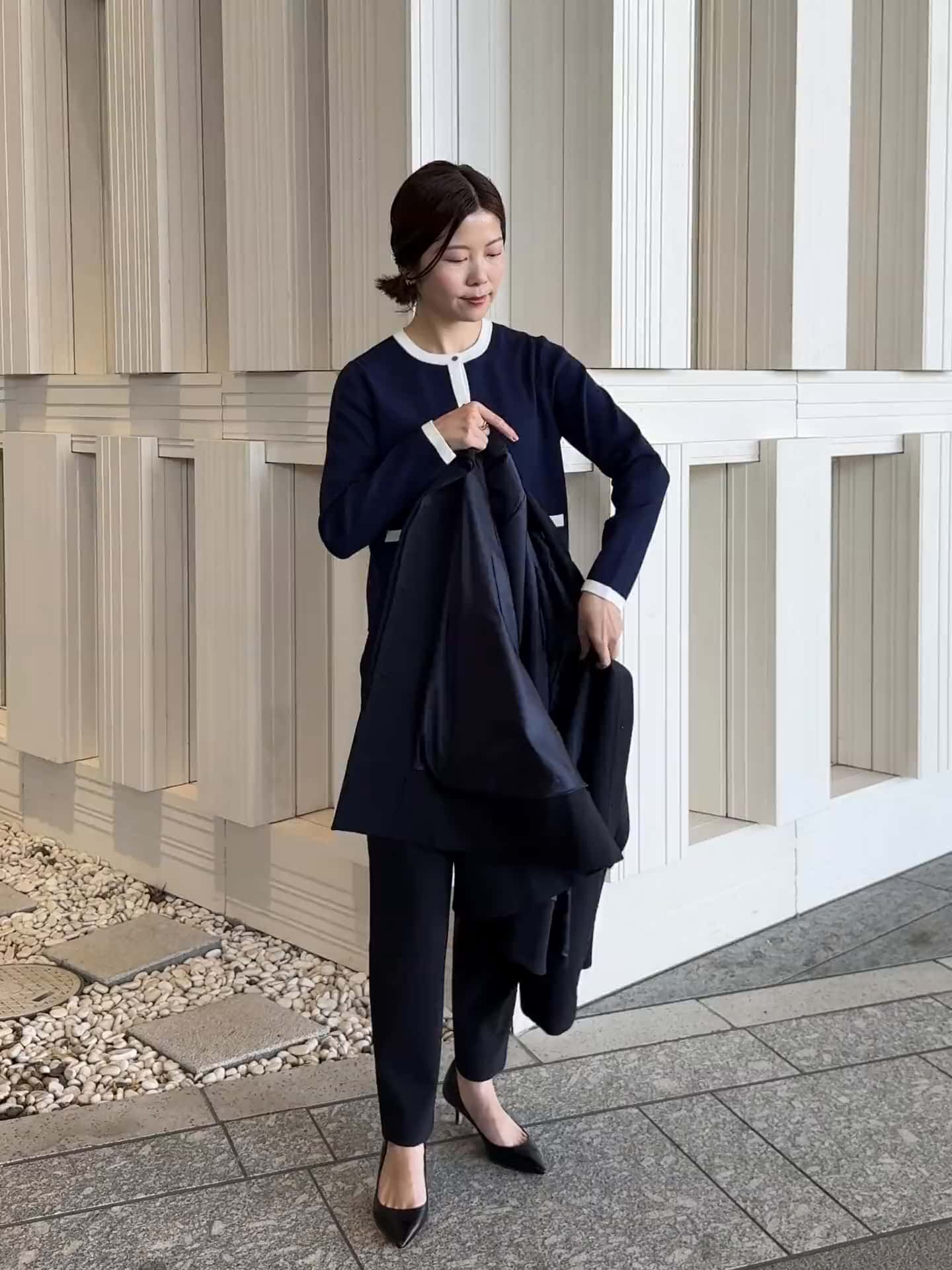 ネイビーカラーで統一した上品な印象になるコーディネートのご紹介です。 セレモニーシーンはもちろん、ビジネスなど幅広いシーンで着用いただきやすいアイテムを中心に、今年らしいデザインとしてケープコートを取り入れ、華やかさとアクセントにしています。 アッセンブルエストネーション公式インスタグラムにも"NAVY COLLECTION"としてご紹介していますのでご覧ください🌱 【着用サイズ】 コート:F トップス:F ボトムス:36 身長:160cm -------- 気になるアイテムや詳細はお気軽にニュウマン高輪店まで問い合わせ下さい。 ◇アッセンブルエストネーション ニュウマン高輪店 ニュウマン高輪 South 3F 営業時間 11:00-20:00 TEL 03-6277-4155 ◇ROUTE JR高輪ゲートウェイ駅南口改札より出て正面の左の棟がSouth棟になります。 BLUE BOTTOLE COFFEE横のエスカレーターから3階に上がって頂き、左側に曲がって頂くとお店がございます。