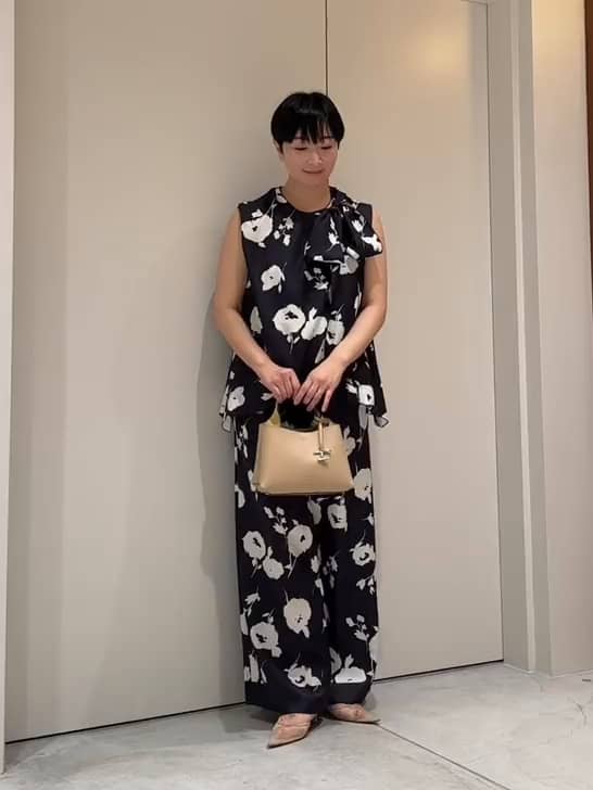 バイカラーのフラワーモチーフが印象的な ブラウス×パンツのセットアップ🪻 ブラウスは、ヨークのように重なるデザインと 肩から続くタイがポイント。 リボンのように結んだりぐるっと一巻きしたり... その日の気分でアレンジを楽しめます。 パンツは裾の無地パネルが全体を引き締め、 ワンタック入りのワイドシルエット, 腰まわりをすっきりと見せながら上品なボリューム感に後ろゴム仕様なので身動き楽ちんもとても魅力的です♡ オールインワンのような洗練された着こなしになり、別々でも様々なテイストにも変化します。 ジャケットを合わせれば、かしこまった席やお食事のシーンにも... カーディガンなど軽い羽織りを合わせて、カラーアイテムでまとめたスタイリングも軽やかで華やかな印象に仕上がります♪ ドレープ性に優れ、シワになりにくい、手洗い可能なポリエステルツイル素材は嬉しいポイント。 暖かい季節、日差しの強い季節に柄ものがまた一段と映えます✨✨ サイズ・素材など商品詳細については掲載アイテムをご確認ください。 ASSEMBLEESTNATION GINZASIX店 TEL:03-6264-5553 営業時間:10:30-20:30 お気軽にご連絡ご来店お待ちしております。