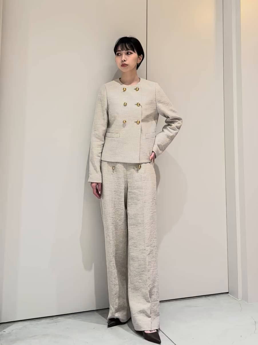 ESTNATION THE FIRSTのツイードセットアップ。 麻×コットンの春夏仕様のツイード素材で、 軽やかさと上質感を両立。 ナチュラルな風合いが、シーズンムードを高めてくれます🌸 フロントにあしらわれたメタルボタンがアクセントとなり、シンプルながらも華やかで洗練された印象に💐 ワイドシルエットのパンツを合わせることで、 程よいリラックス感がありながらも、きちんと見え✨ 新学期シーズンの装いにもおすすめの一着です🌷 GINZA SIX店では3/26(木)より店頭にてご覧いただけます。 お気軽にお立ち寄りくださいませ☆ ASSEMBLEESTNATION GINZASIX店 TEL:03-6264-5553 営業時間:10:30-20:30