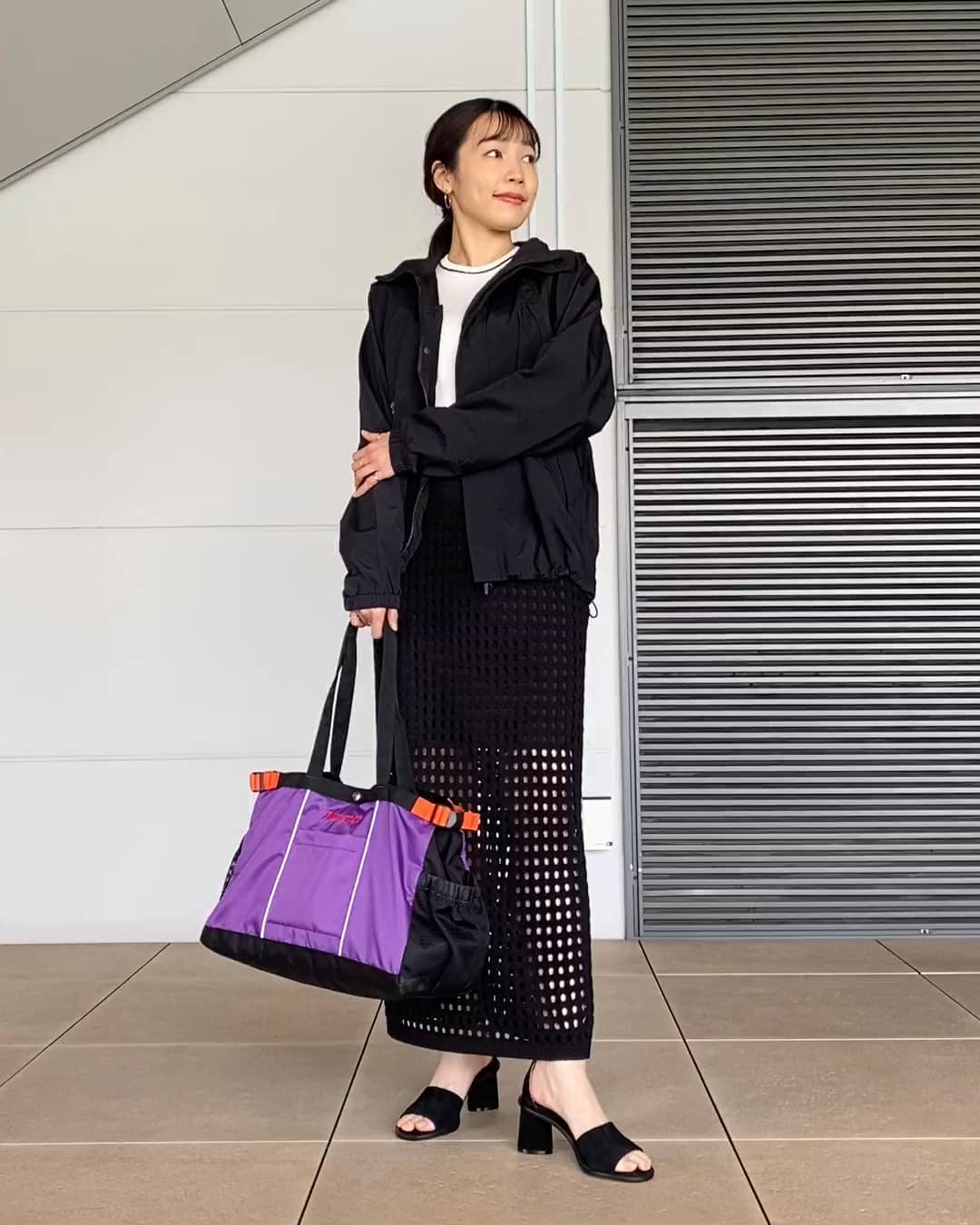 26SSで初登場したインラインのモデルをベースに、生地・サイズ感・カラー・ロゴ位置を別注したブルゾン✨ 少し光沢感のある生地を使用した、バイカラー配色のパープルとベーシックなブラックの2色展開です 今回は、メッシュニットスカートを合わせて、 綺麗めカジュアルなスタイリングに仕上げました ---------- サイズ・素材など商品詳細については掲載アイテムをご確認ください。 ルミネカードをお持ちのお客様は、ルミネカードWeb決済でのご案内が可能でございます。お電話かLINEからお問い合わせ下さいませ。 エストネーション横浜店 : 045-534-7128