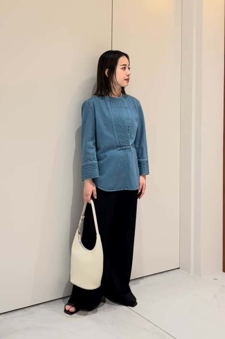 程よいダメージの効いたデニム素材のトップス。胸元の空き具合もインナーに悩むことなく着ていただけると思います◎ ボトムはセットアップのデニムパンツもおすすめですが、綺麗めにバイヤスパンツでスタイリングしました。 トップス、ボトム共にホームケア可能なのが嬉しいポイントです✨ ASSEMBLEESTNATION GINZASIX店 TEL:03-6264-5553 営業時間:10:30-20:30
