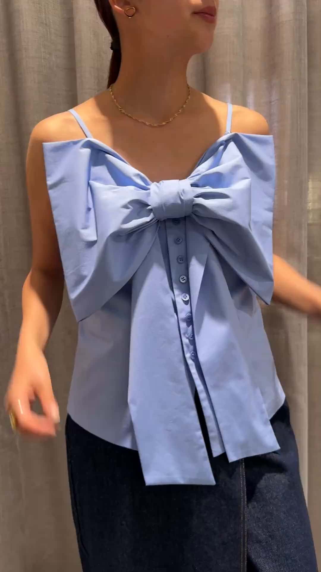 UNUS💙 大きなリボンが目を引くUNUSのキャミソールブラウス。 甘めな印象になるので、インディゴのワイドシルエットのデニムと合わせました。 インナーを着て、ビスチェのように着るスタイルもおすすめです。 明るいブルーのカラーが気分も上げてくれます。 ワイドシルエットのデニムは、前から見るとスカートのように見えるのも可愛いポイントです。デザイン性はありますが、ベーシックに何でも合わせられる万能パンツ。 デニムのバリエーションに1本あるとスタイリングの幅も広がります。
