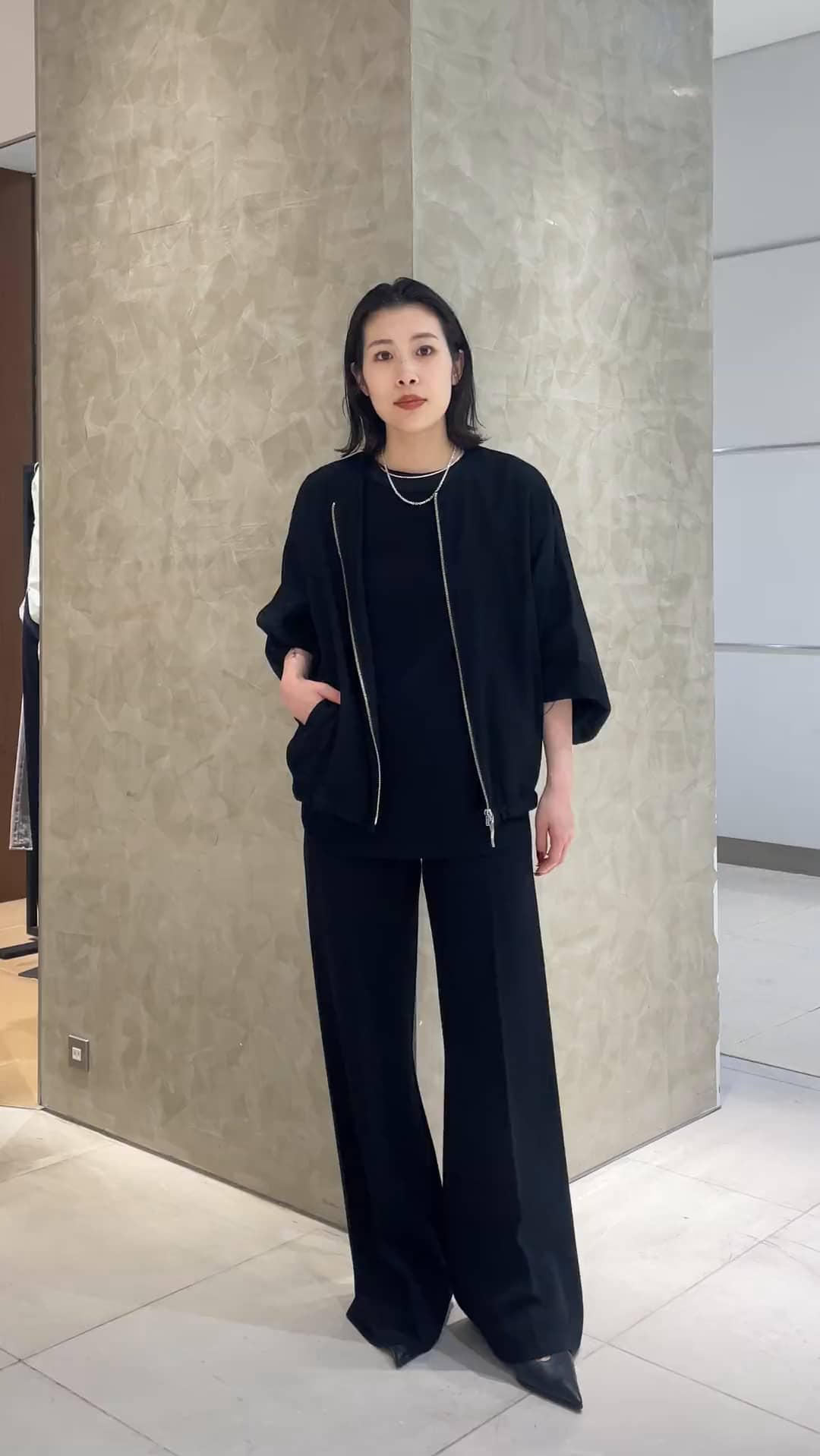 気温差の激しい今時期に活躍してくれるシアーブルゾンは着回し力も高く、一着持っているとスタイリングの幅が広がるアイテムです✨ 着心地も軽く肌離れの良いカラミ素材は手洗い可能な点も嬉しいです。 コットン×アセテート素材のニットパンツはイージー仕様で履き心地が良いのはもちろん、ワイドストレートのシルエットが美しく、カジュアル〜綺麗めまで幅広く合わせていただけます◎ 【着用アイテム】 アウター:ESTNATION(36サイズ) トップス:COLUMN(Fサイズ) パンツ:ESTNATION(36サイズ) ネックレス:blanc iris その他スタッフ私物