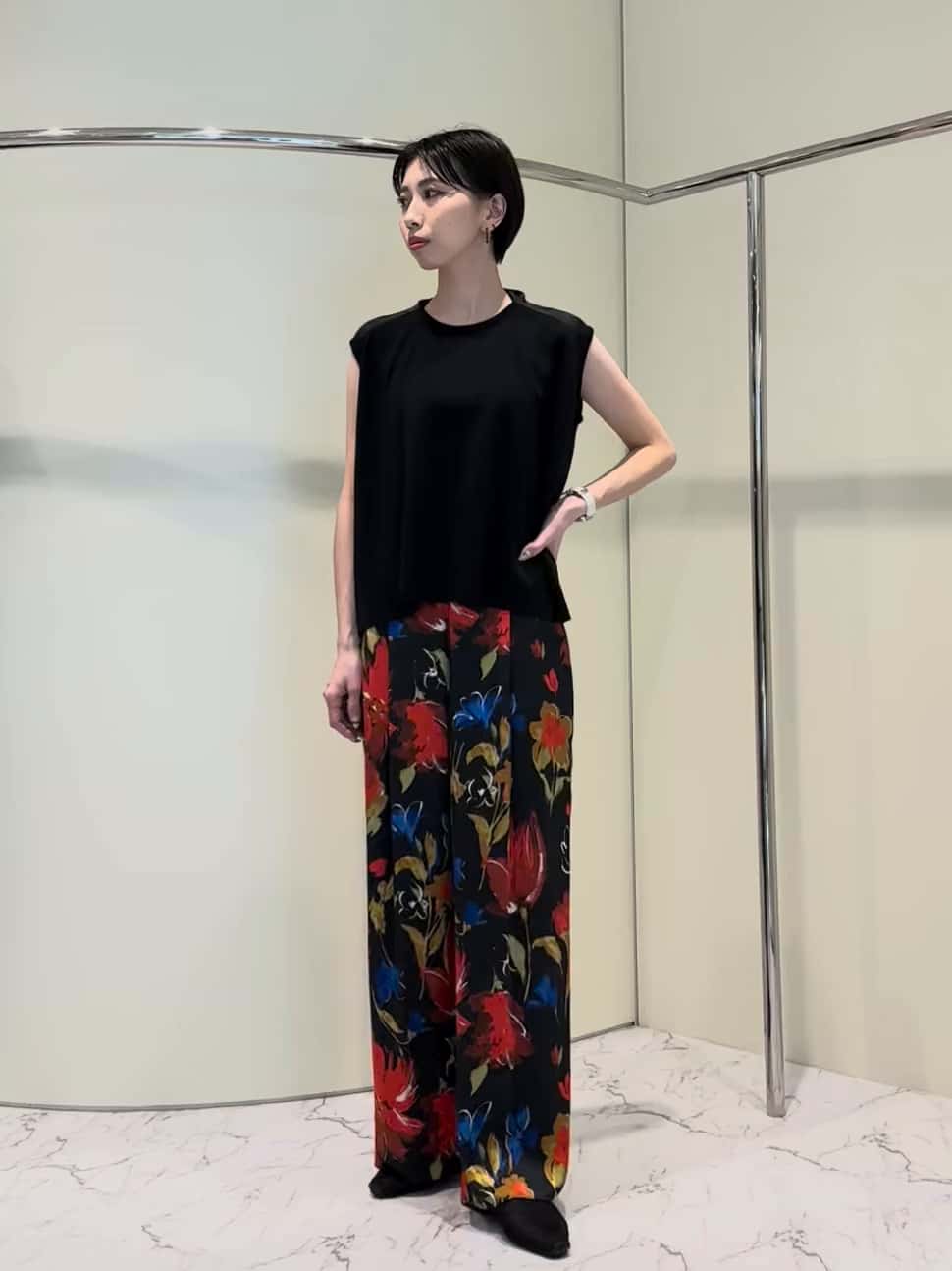 4/23発売🆕 エストネーションオリジナルの新作を使用したスタイリング。 トップスはバックショルダーツイストニットTシャツ。 背中のカッティングが程よい抜け感を出し、シンプルながらも洗練された印象に🎀✨ コットン由来の再生セルロース繊維「ベンベルグ」にストレッチ性を加えた素材で、上品な光沢としなやかな着心地が魅力。型崩れしにくく、フォルムをキープしてくれます◎ 首元は詰まりすぎずすっきりと見え、脇も開きすぎない絶妙なバランスで、1枚でも安心して着られるのが嬉しいポイント💡 肩部分のビンテージサテンとの異素材や、ツイストディテールがさりげないアクセントに💫 ボトムには華やかなフラワープリントパンツを合わせて、シンプルなトップスとのメリハリを🌼 落ち感のあるシルエットで、軽やかさと女性らしさを引き立ててくれます🌹 トップスは手洗い可能でデイリーにも取り入れやすく、パンツもスタイリングの主役になる一本。 それぞれ単品でも着回し力が高く、幅広いシーンで活躍します🍀 店頭にてご覧いただけます。 お気軽にお立ち寄りくださいませ☆ 🗓️4/10〜ASSEMBLEESTNATION3店舗にて1周年イベントも開催中! ASSEMBLEESTNATION NEWoMan高輪店 TEL: 03-6277-4155 営業時間:11:00-20:00