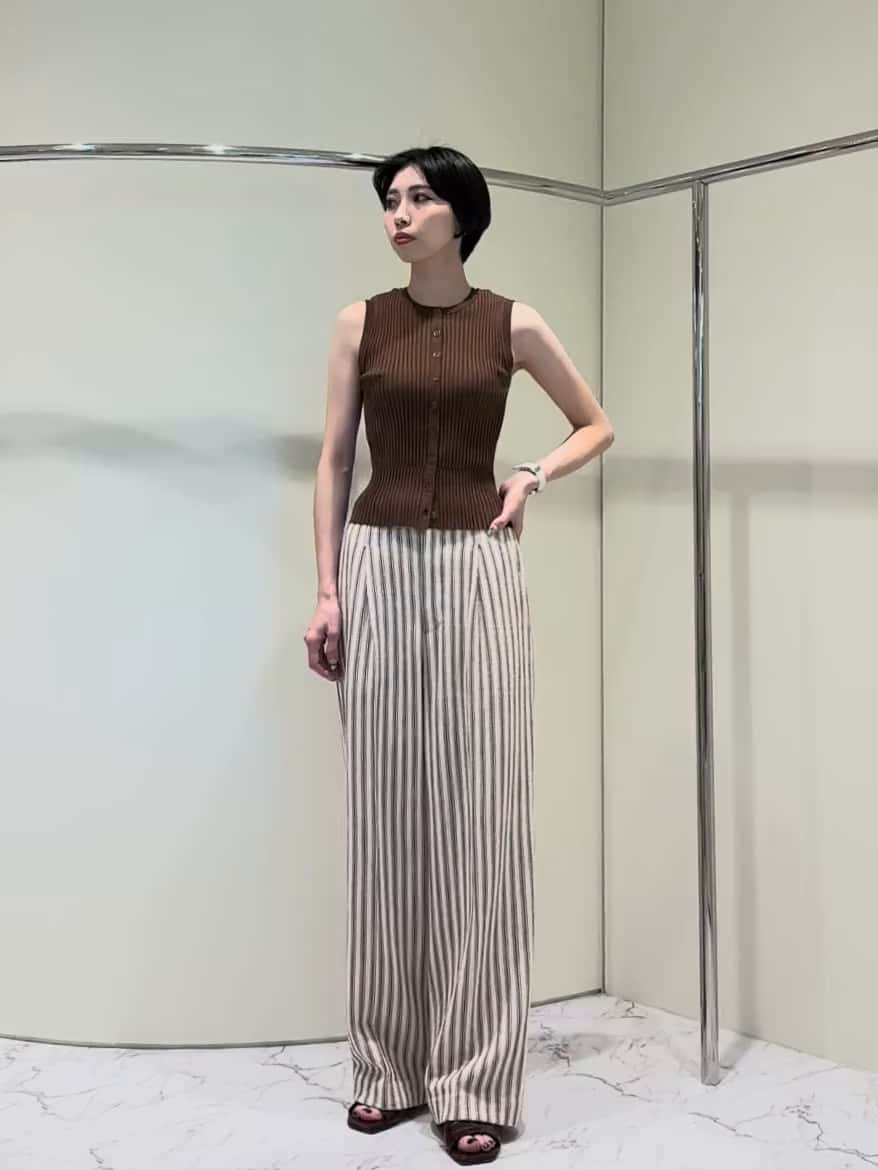 前回ご紹介したカラミストライプパンツに、 ノースリーブニットを合わせたコーディネート。 合わせたノースリーブニットは、前後2wayで着られる着回し力の高い一枚💫 一枚で着るときはボタンデザインをフロントにしてポイントに、同素材のポロニットカーディガンやジャケットを羽織る際はボタンを後ろにしてミニマルにも着られます🤎 腕まわりの開きも気になりにくく、一枚でも取り入れやすいデザイン🌼 インナーには黒のチューブトップを合わせていますが透け感も気になりにくく、インナーを選ばず着やすいのも嬉しいポイントです💡 リブ編みならではの伸縮性がありながら身体のラインを拾いすぎず、着心地も快適。手洗い可能なのもこれからの季節に嬉しいところ🧺🫧 パンツはセットアップではもちろん、このようにブラウン系トップスを合わせるとまた違った印象で楽しめておすすめです✨ 店頭にてご覧いただけます。 お気軽にお立ち寄りくださいませ☆ 🗓️4/10〜ASSEMBLEESTNATION3店舗にて1周年イベントも開催中! ASSEMBLEESTNATION NEWoMan高輪店 TEL: 03-6277-4155 営業時間:11:00-20:00